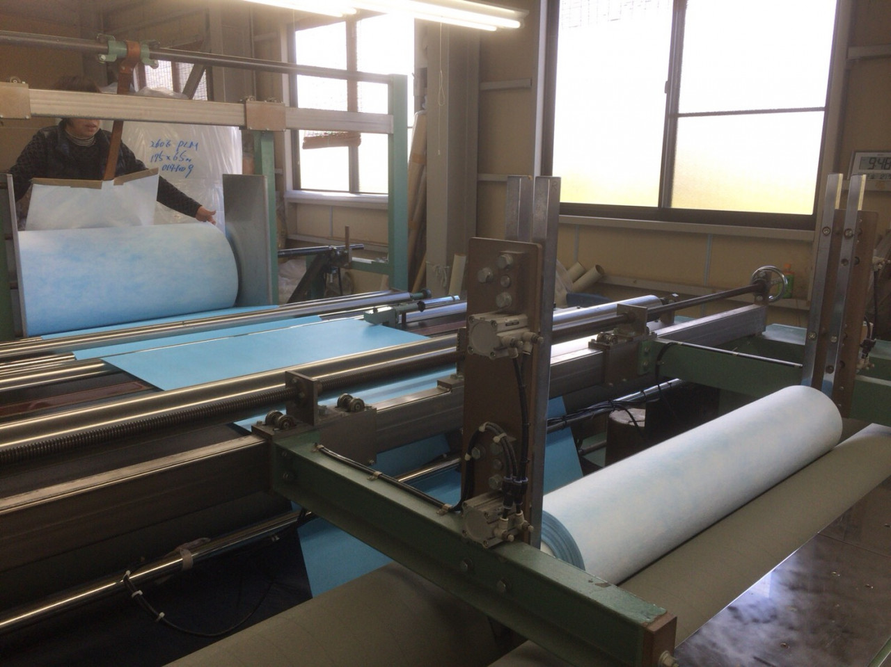 滋賀にてスリッターを使用した加工を不織布に施しております